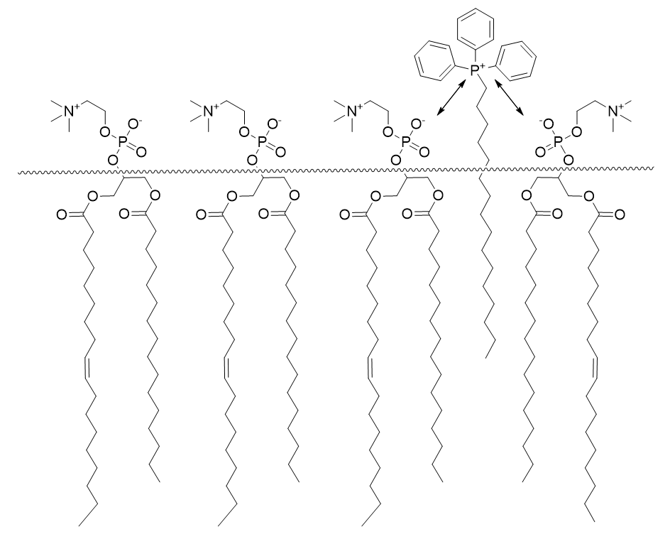 Triphenylphosphoniums are unlike typical physiological cations; the phenyl groups present a lipophilic accessibility surface. [51] They are unable to participate in H-bonding and they are not Lewis acidic. These factors result in poor phosphonium hydration and relative to metal ions TPPs are very easily desolvated. [52]